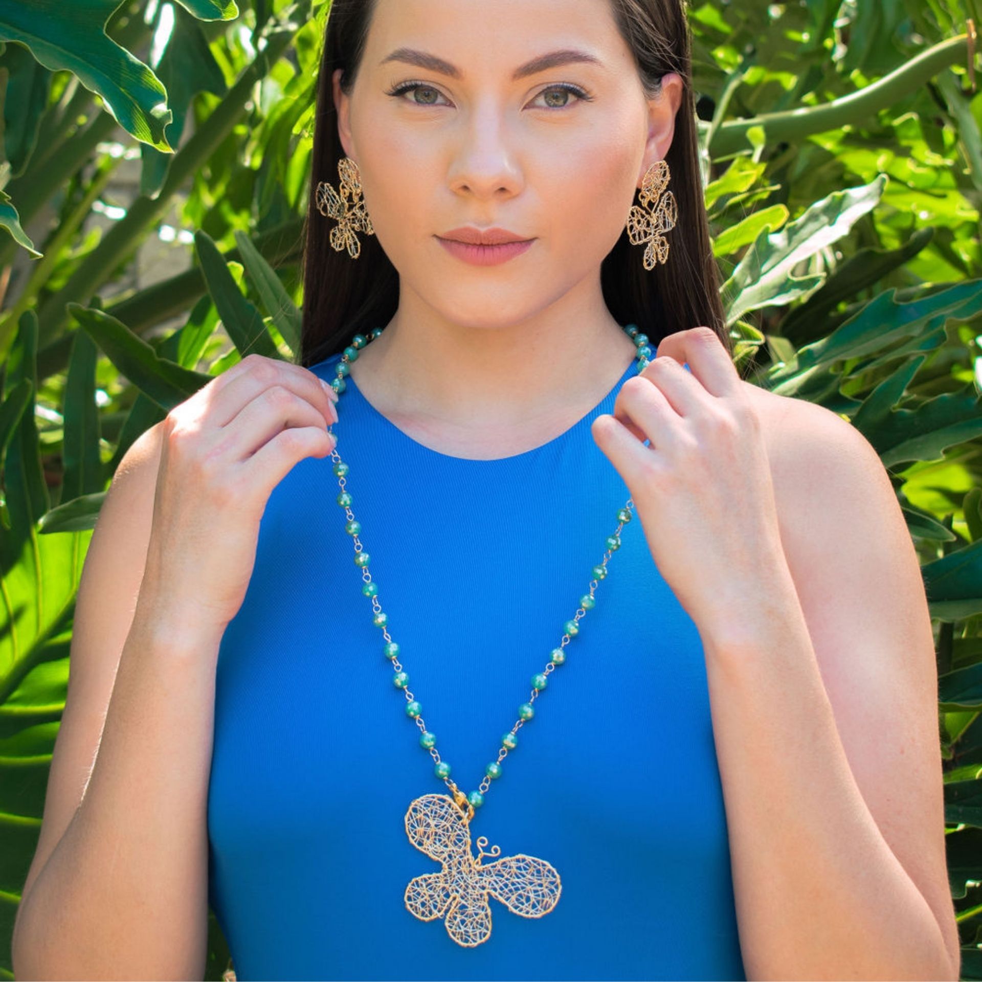 - Dije Tejido con Hilo Aleación de Cobre con baño de Oro 18k Hipoalergénico.